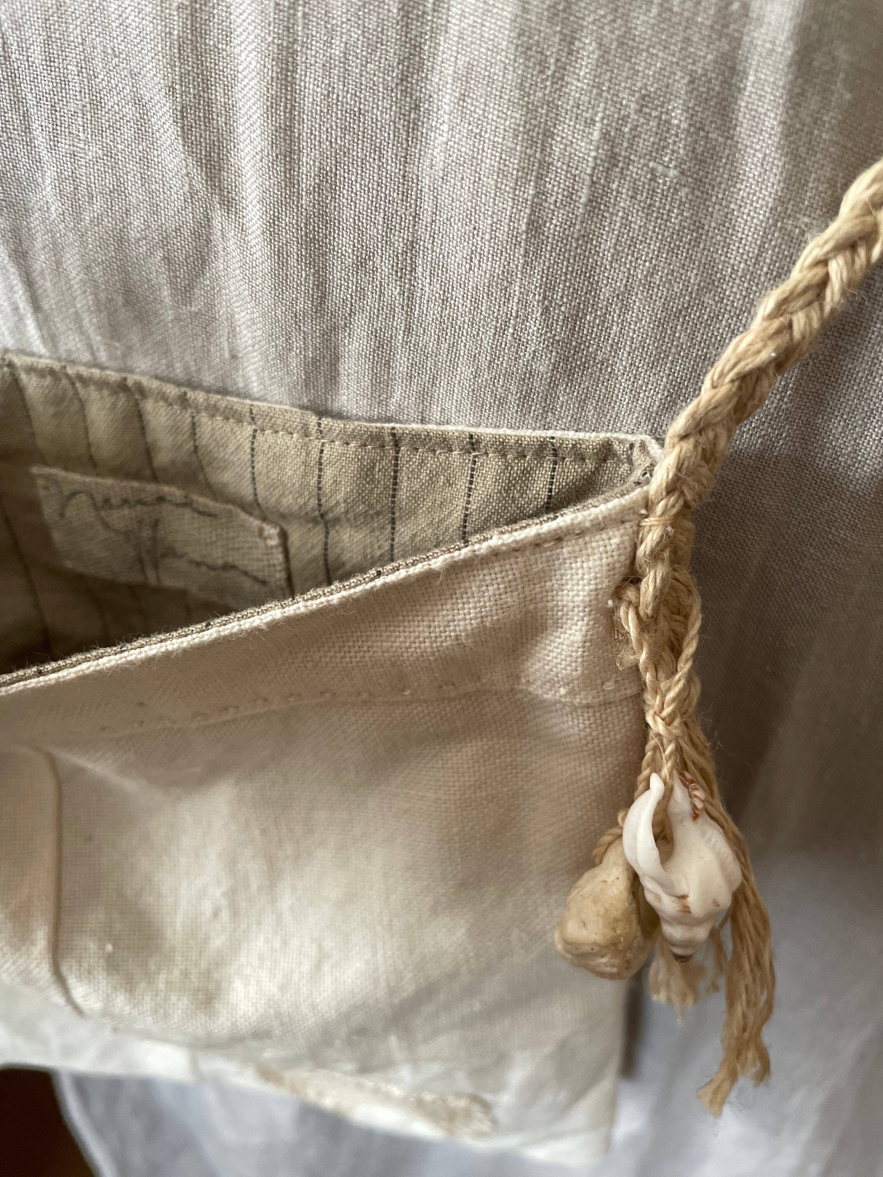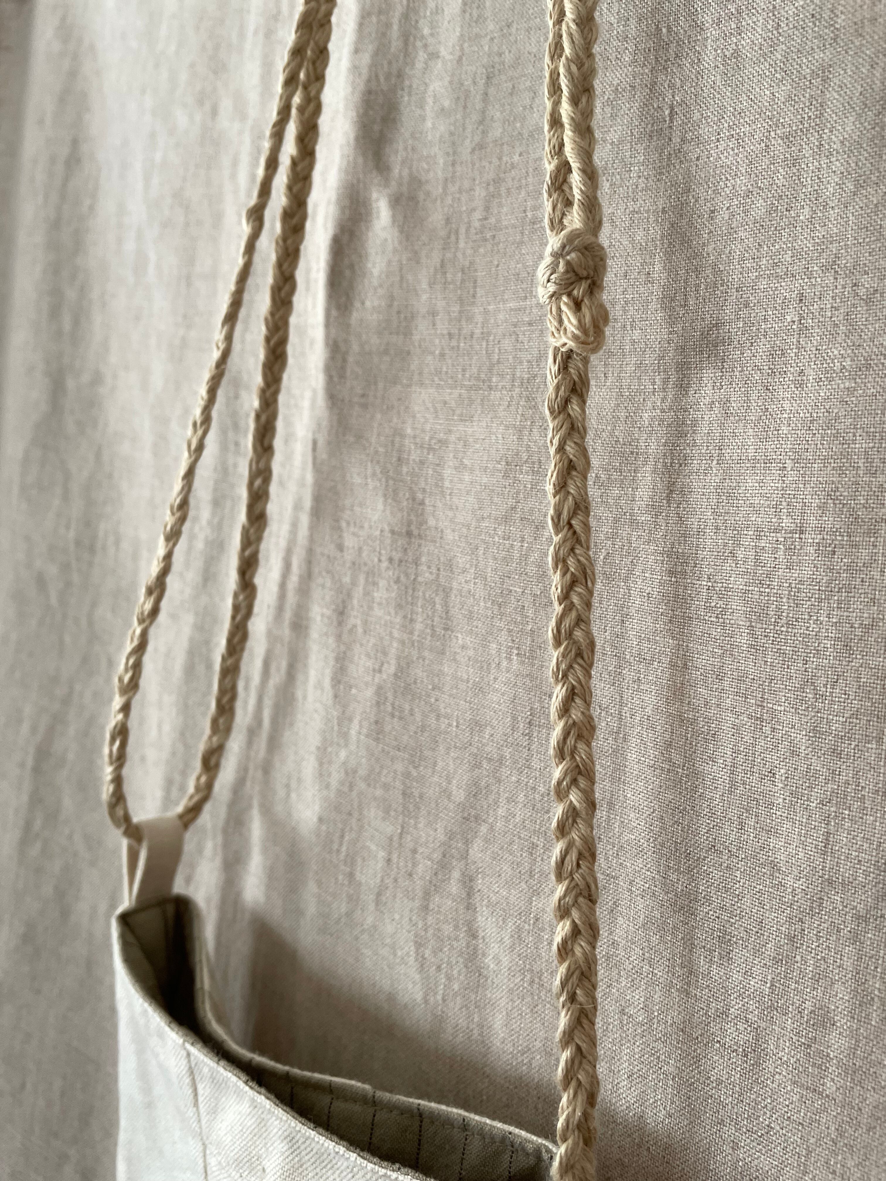 ショルダーは太めのリネン糸を手編みしています。