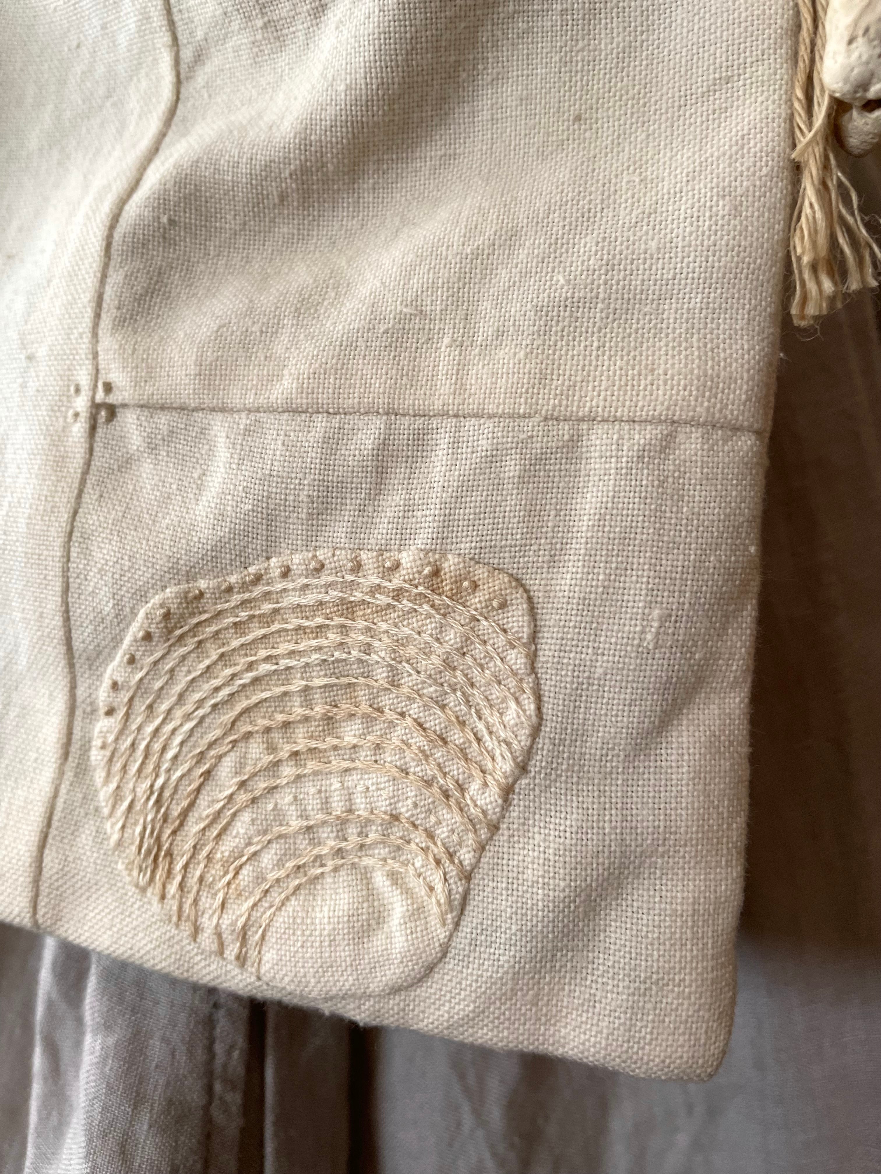貝殻の刺繍はアップリケになっています。